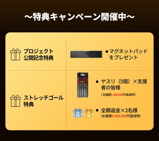 さらに、プロジェクト公開を記念して【先着特典キャンペーン&ストレッチゴールキャンペーン】も開催決定!