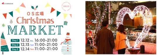 オーエス株式会社(本社:大阪市北区、代表取締役:金谷伸雄)は、梅田エリアの冬を彩るイベント「UMEDA MEETS HEART」の開催期間にあわせて、大阪・梅田のOSビル1階に位置する「OS広場」にて、2025年12月12日(金)から14日(日)の三日間、『クリスマスマーケットinOS広場』を開催します。