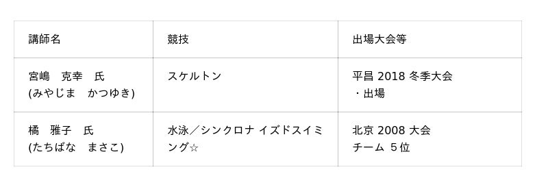 JOCオリンピック教室とは、オリンピアンが教師役となり、オリンピアン自身の様々な経験を通して、「オリンピズム」や「オリンピックの価値」等を伝えると同時に、この価値はオリンピアンだけのもの