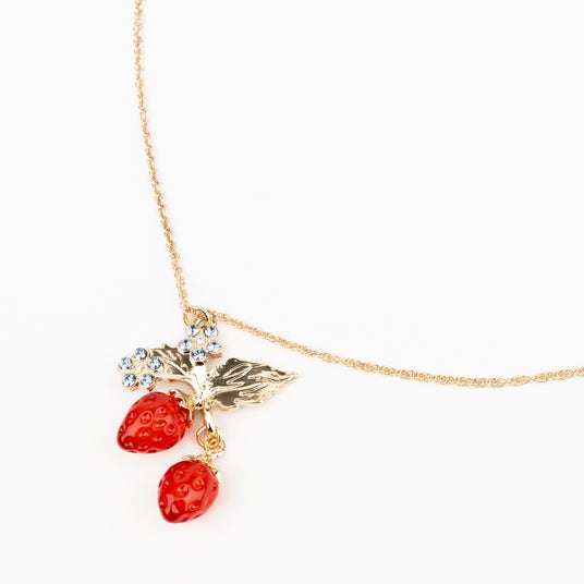 Cath Kidstonを象徴するストロベリーモチーフは、Liquemの得意とする立体樹脂を用いてアクセサリーとして仕上げられ、ピアス、イヤリング、ペンダントとして展開されます。まるでいちごがそのまま飛び出してきたように、つやつやと熟れた真っ赤な2粒が軽やかに揺れ、その上にはライトサファイアのクリスタルで描いた小さなお花がきらりと光ります。身につけるだけでCath Kidstonの世界をお散歩しているような、楽しい気分にしてくれるアイテムです。イヤリングは長時間つけていても痛くなりにくいクリップ式で安定感のあるつけ心地。