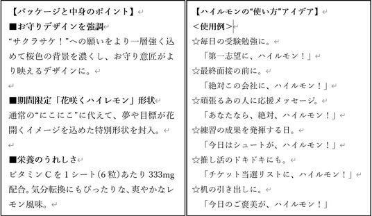 1980年の発売以来、ハイレモンは“やさしい酸味とレモンの爽やかさ”で幅広い世代に愛されてきました。受験や就活が本格化する12~2月は、合格祈願グッズが店頭に増える季節。昨年から当社では「志望校や志望企業に“入る”」という語呂にちなみ、がんばる人を後押しする“お守り”発想の期間限定パッケージ「ハイルモン」を展開。2年目の今年は、“サクラサケ!”への願いをより一層強く込めて、桜色の背景を昨年より濃くし、店頭で目に留まりやすいデザインに進化。試験や面接に持ち歩きやすい箱形態はそのままに、さらに“気持ちを整える相棒”になることを目指しました。試験会場や最終面接のお守りとして、また家族や友人へ気軽に渡せる“応援ギフト”として幅広く活用いただけます。