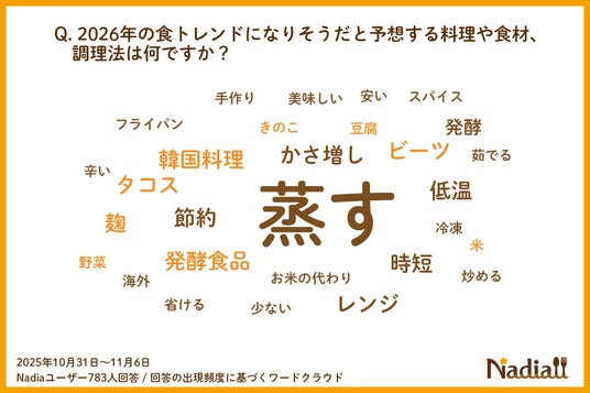 Nadia株式会社(東京都港区/代表取締役社長 葛城嘉紀)にて運営している料理メディア「Nadia(ナディア)」(URL:https://oceans-nadia.com/)は、ユーザーアンケートおよび日々の食卓のトレンドを分析し、2025年に流行した料理・レシピの総括および、2026年のレシピ・食材のトレンド傾向について予測をまとめました。