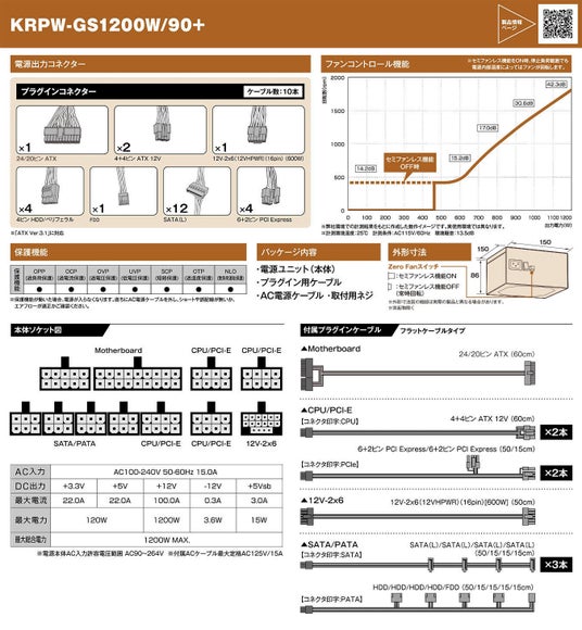 - ハイエンドグラフィックボードの消費電力に耐える1200Wの大容量モデル。