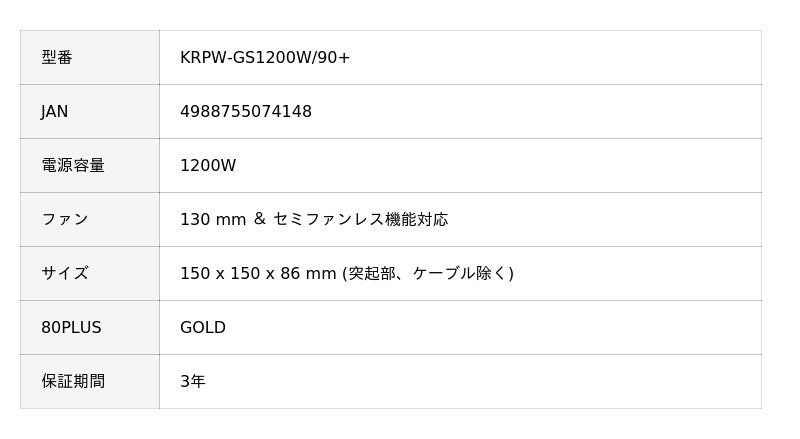 玄人志向から、コストバランスに優れた、80PLUS GOLD認証取得のPC用 1200W ATX電源『KRPW-GS1200W/90+』発売
