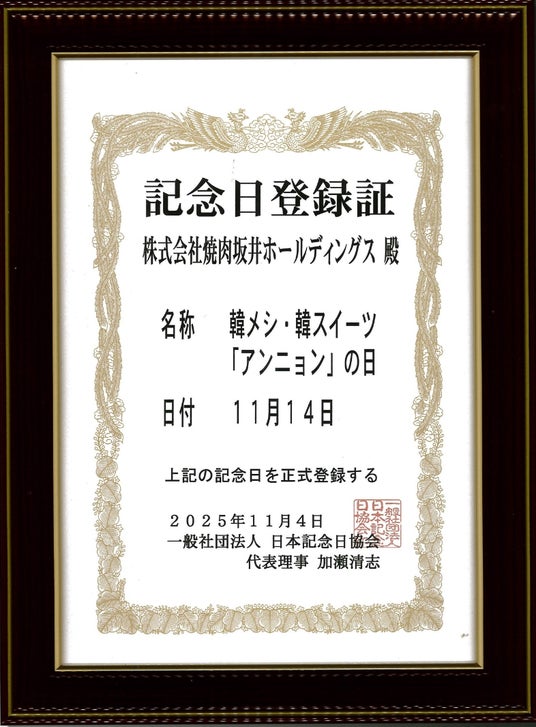 記念日名称:韓メシ・韓スイーツ 「アンニョン」の日 記念日日付:11月14日 正式登録日:2025年11月4日(火)「アンニョン」は1999年4月福岡県糟屋郡にて1号店をオープン