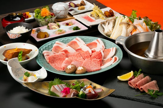鹿児島の冬味覚「寒鰤」と、黒牛・黒豚のしゃぶしゃぶを味わえる贅沢なプランです。寒鰤はおろし和え・お造り・ブリ大根の3品でご提供。黒牛はローストビーフとしゃぶしゃぶで、黒豚とともに食べ比べをお楽しみいただけます。