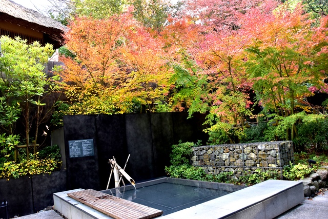 万葉公園「湯河原惣湯」玄関テラスの足湯と紅葉(イメージ)