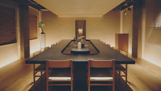 水の流れる幻想的なテーブルを囲み、静かで穏やかなひとときを過ごせる空間をご用意しました。