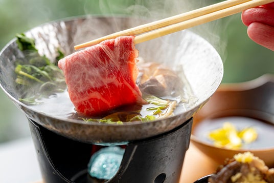 やわらかな和牛肩ロースと旬の冬野菜を上品な割り下で煮上げた贅沢なすき焼き鍋。