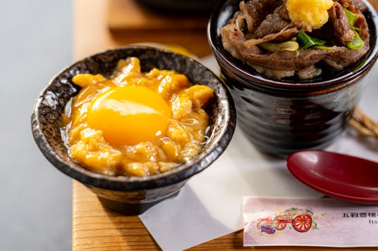 五木茶屋で人気の定番丼「黄金のたまご丼」。