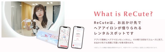 ReCuteはこの課題に対し、駅や商業施設などのお化粧室や遊休スペースでヘアアイロンをレンタルできるシェアリングサービス(レンタルスポット) を展開しています。