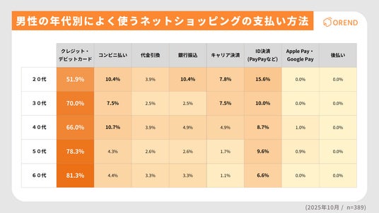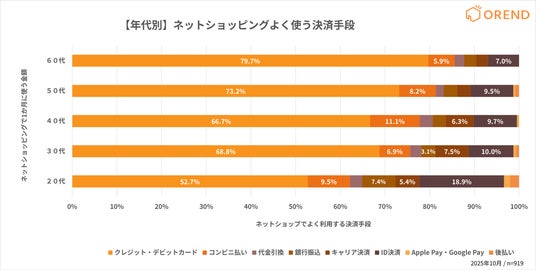 URL:ネットショッピングの支払い方法を年代・男女別に調査|主な決済手段の利用傾向を解説【OREND(オレンド)独自レポート】(URL:https://orend.jp/mag/a0746)