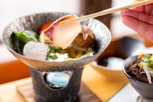 脂ののった寒鰤を冬野菜とともに湯にくぐらせて。