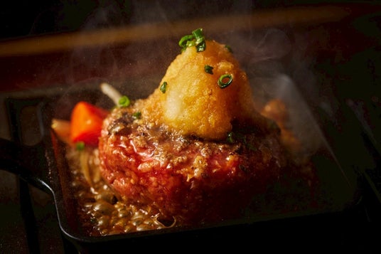 SNSで大バズりし続けている、こじま名物のハンバーグが店舗限定で“食べ放題企画”。黒毛和牛100%の肉汁ハンバーグを、60分間好きなだけ!