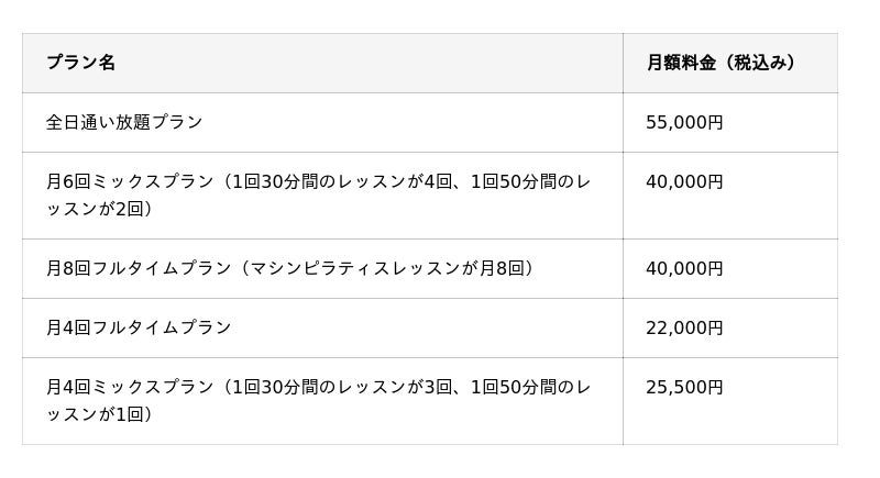 <マシンピラティス料金プラン