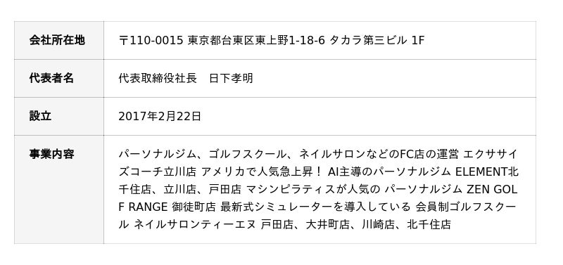 都内を中心に全国61店舗を展開する「ELEMENT」は、月額39,800円で通い放題のパーソナルジムブランドです。1回30分のパーソナルトレーニングを通してお客様の「運動の習慣化」定着に向けて適切な運動習慣や食事習慣を指導しリバウンドをしないための体づくりをサポートしています。ワークアウト、シェイプアップ、機能改善の全3メニューを展開しており、お客様が体型や生活リズム、性格、目指すゴールをもとに、習慣化を定着させるためのプランをお客様とともに設計いたします。