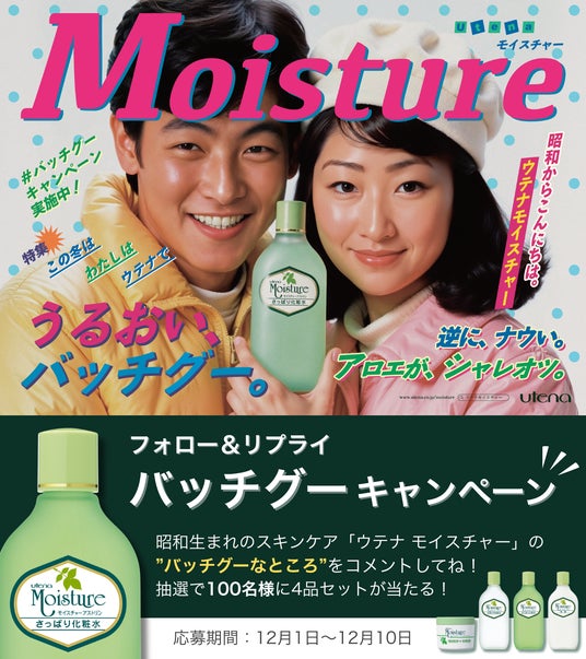 このままでは「ウテナ モイスチャー」の存続が危ぶまれるという危機感から、昨年より新たな層にアピールするために、昭和生まれの古いブランドであることを逆手に取り、意図的に昭和レトロな広告を展開しています。これにより、インパクトを高めつつ、新しい層への訴求を図っています。