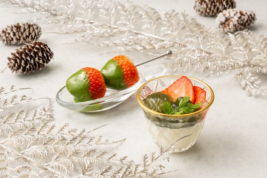 濃厚な抹茶と甘酸っぱい国産いちごを組み合わせた色鮮やかなスイーツと、温かい茶そばや香ばしい焼きおにぎりなどのセイボリーで、冬ならではの贅沢なティータイムをお楽しみいただけます。