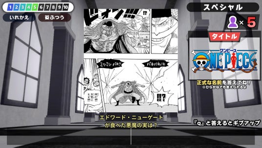 2024年12月のリリース以来、SNSや動画配信サイトを中心に話題沸騰中の「漢字でGO! 集英社マンガ祭」の無料アップデートを「年末年始 集英社マンガ祭2025-2026」の開催に合わせて配信開始いたします。2025年12月1日実施のアップデートにより、『遊☆戯☆王』『ボボボーボ・ボーボボ』『BLEACH』などの収録済み作品の問題数が大幅に増加したことに加えて、『悪祓士のキヨシくん』や『魔男のイチ』どの人気作品のルビクイズも新規で追加いたします。さらに、今回より新規搭載される「スペシャルモード」では、『ONE PIECE』の「悪魔の実」や『ジョジョの奇妙な冒険』の「スタンド」など、「この作品といえば!」を切り口とした多種多様なクイズを楽しむことができます。