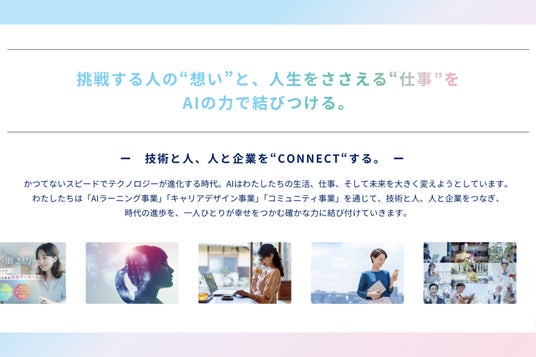 わたしたちは「AIラーニング事業」「キャリアデザイン事業」「コミュニティ事業」を通じて、技術と人、人と企業をつなぎ、