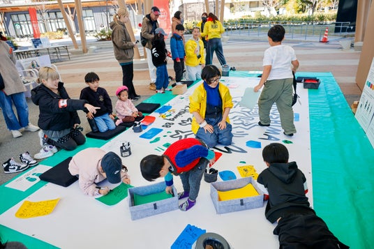 キース・ヘリングの平和への願いを未来へつなぐ特別イベントを開催広島で250人の子どもたちが描いた「平和のバナー」が完成