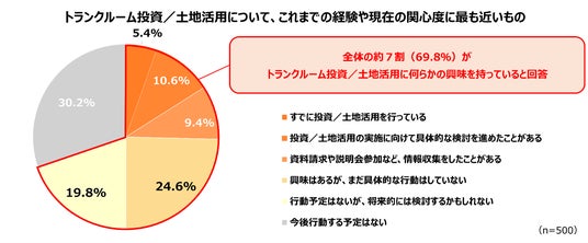 ◆約7割が何らかの形でトランクルーム投資・土地活用に興味関心あり