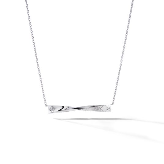 繊細なラインが光をやさしく受け止め、胸元で静かにきらめきます。