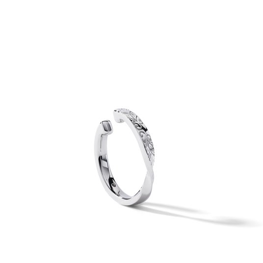 反対側には自然を思わせる繊細な模様が彫りこまれ、