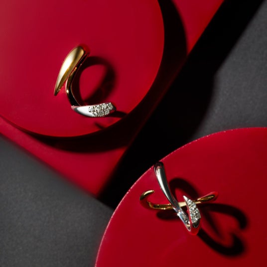 (上)イヤーカフ ¥30,800 / (下)リング ¥36,300(ともにSV925、SV925 YG Coating、キュービックジルコニア)