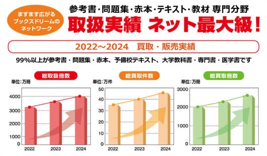 株式会社ブックスドリーム(本社:大阪府大阪市、代表取締役:井上聖也)は、同社が運営する参考書・問題集・赤本・予備校テキスト・塾テキスト・教材の専門買取サイト「学参プラザ」で公開している高価買取・買取価格保証商品を更新し、最新の参考書・問題集・赤本を大幅追加追加。「大学受験・高校生用:4000点以上、高校受験・中学生用:5000点以上、中学受験・小学生用:4000点以上」となりましたので、ご案内いたします。
