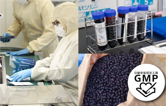 製造はGMP認定工場で行われ、原材料受け入れから製造・包装・出荷まで、すべての工程で厳格な品質管理体制を整えています。