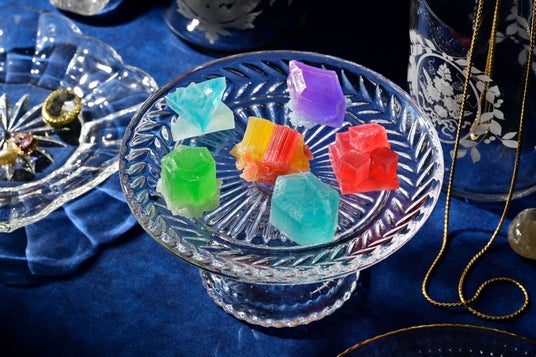 色とりどりの輝きを放つ琥珀糖。盛り付けるだけで優雅なティータイムに。