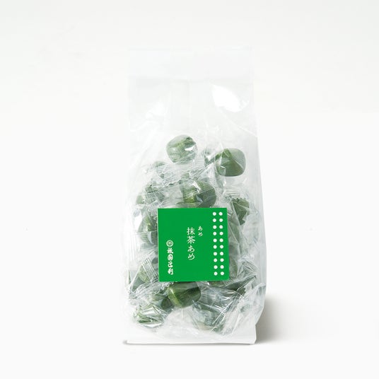 抹茶あめ 40g石臼挽き抹茶を贅沢に練り込んだ、可愛らしい小粒の飴です。鮮やかな深緑色で輝く艶やかな球体を口に運べば、濃厚な抹茶の味と香りがお口に広がります。リーズナブルな価格で、お土産にお選びになる方も多く、ちょっとしたギフトにもおすすめです。