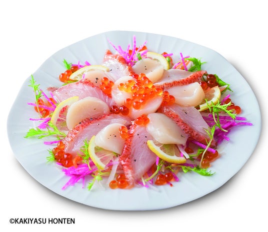 『金目鯛・帆立・いくらの ご馳走カルパッチョ風サラダ』税込897円/100g
