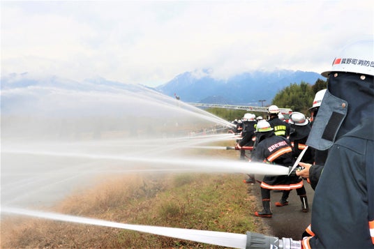 当日は入場パレードを皮切りに、優良消防団員の表彰や通常点検、消防訓練展示といった伝統的な催しに加え、消防団員による一斉放水も実施します。
