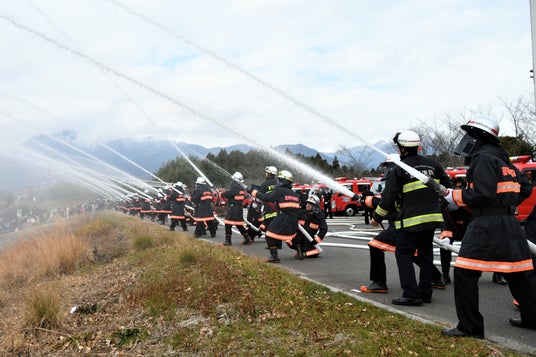 新春恒例!菰野町消防出初式を開催 入場パレードや一斉放水の他、はしご車搭乗体験や訓練展示も