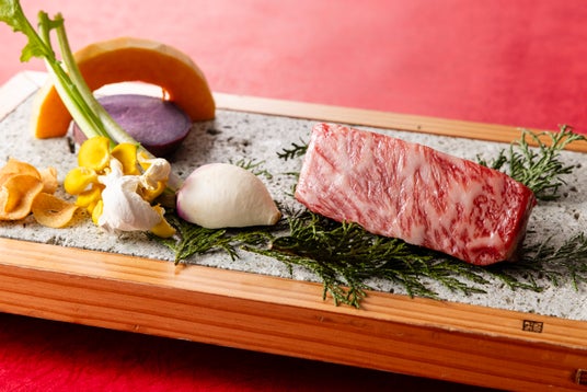当店は、新宿の喧騒を忘れさせる落ち着いた大人の雰囲気の中、神戸牛や米沢牛、伊勢海老、鮑などの厳選素材を鉄板焼で愉しめます。ライトアップされた中庭を望むカウンター席では、シェフが目の前で素材を焼き上げる迫力ある鉄板さばきをご覧いただけます。