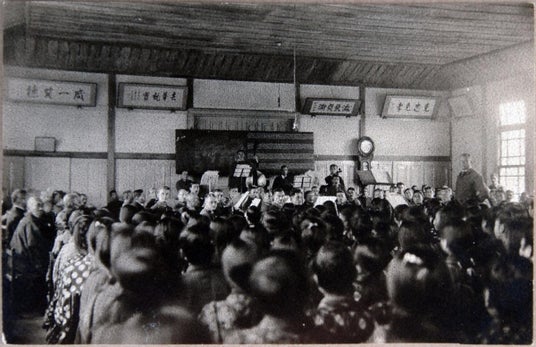 1919年12月3日、久留米高等女学校講堂における演奏当日の様子(提供:久留米市教育委員会)