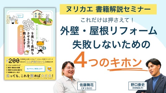 外壁塗装の比較サイト「ヌリカエ」を運営する株式会社Speee(本社:東京都港区、代表取締役:大塚英樹、東証スタンダード市場:4499、以下Speee)は、このたび2025年11月29日(土)初の書籍『施工実績6万件から導く 家を美しく長持ちさせる方法、教えます! ― 外壁・屋根リフォームのすべて―』(株式会社エクスナレッジ)を出版しました。これを記念し、紀伊國屋書店 新宿本店・梅田本店の2店舗で2025年12月1日から書籍フェアを開催するとともに、書籍の内容を解説するセミナー動画をYouTubeで公開したことをお知らせします。