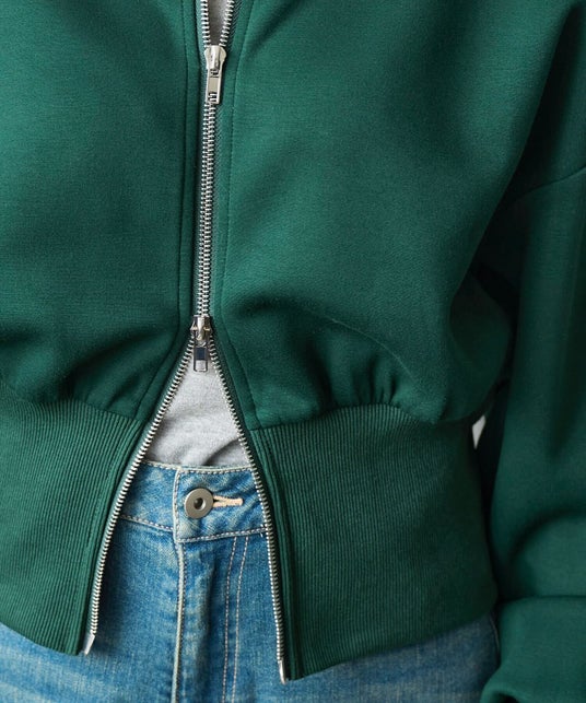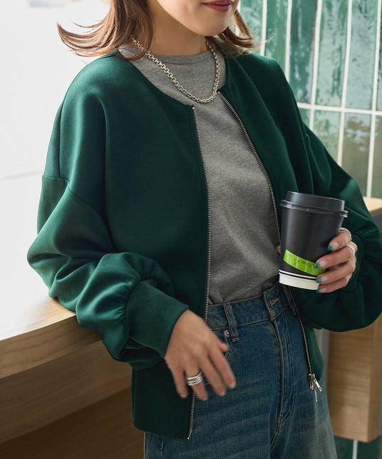 チームを象徴する色合いを日常のコーディネートに自然となじむよう、落ち着きのあるトーンに仕上げています。応援シーンだけでなく普段使いでも活躍する万能アウターです。