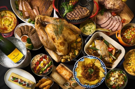 ホテル特製のローストターキーやブイヤベースをはじめ、グリルステーキ、BBQスペアリブ、ハニーローストポークなど、ボリューム満点の料理が並びます。