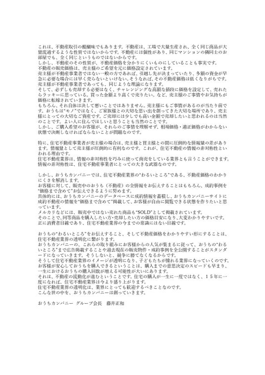 お客様が後悔のないおうち選びができるよう、誠実に精進してまいります。