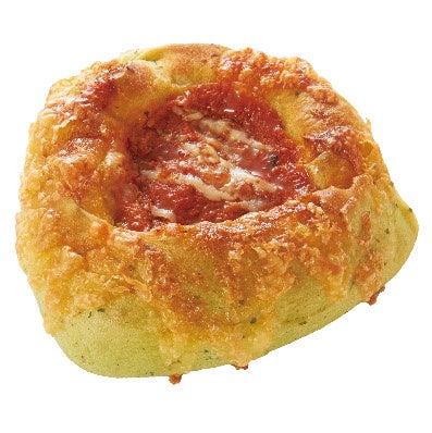 バジルを練り込んだ風味豊かな生地に、完熟トマトソースを包み込み、さらにマヨネーズとチーズをトッピングして焼き上げました。