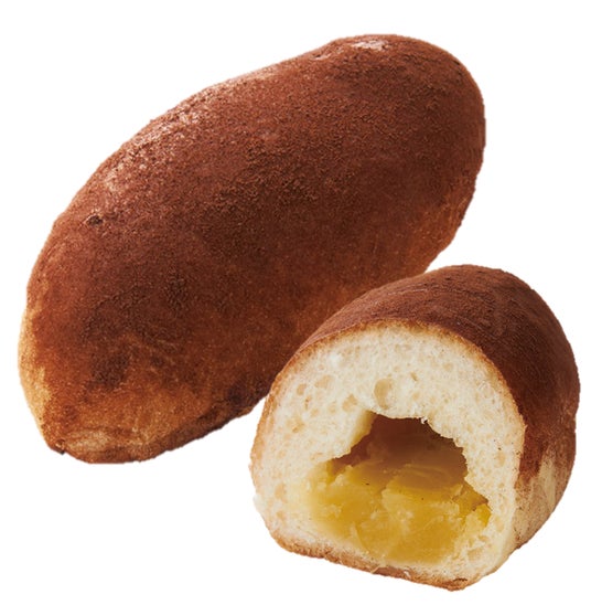 ふんわり生地にスイートポテト餡をたっぷり包み、ジュワッと溶けたバター入りマーガリンでしっとりコクのある味わいにしました。ほんのりとした苦みがあるココアパウダーを表面にまぶし、焼き芋の皮のような見た目で、まるで焼き芋を食べているようなパンです。