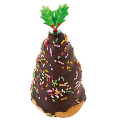 毎年恒例のお子さまに大人気のクリスマスツリー。ホイップの入ったコロネにチョコレートをコーティングし、クリスマスの華やかな雰囲気をカラースプレーで表しました。食べるだけでクリスマス気分を味わえます。