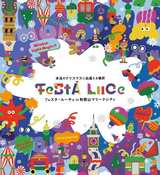 広場の真ん中のシンボリックな巨大クリスマスツリーは昨年より2m高くなって18mに! ヨーロッパの街並みと遊園地エリアを繋ぐ橋は、光と鏡が織りなすまるで鏡の国への入り口のような幻想的な空間に。プロジェクションマッピングや、子どもたちに大人気の光の遊園地、温かい食べ物や飲み物がたくさん集まったクリスマスマーケットも開催します。また、今年は2023年度に開催されたドローンショー「WAKAYAMA LIGHTS in FeStA LuCe」が和歌山最大の500機になって帰ってきます。夜空に光が浮かぶ幻想的な世界に没入できるランタンフェスや、大好評のフェスタ・ルーチェ音楽会/大道芸など、何回来ても飽きないイベントが盛りだくさんです。今年1番の冬の思い出をフェスタ・ルーチェで作りませんか。皆様のご来場を心よりお待ちしています。