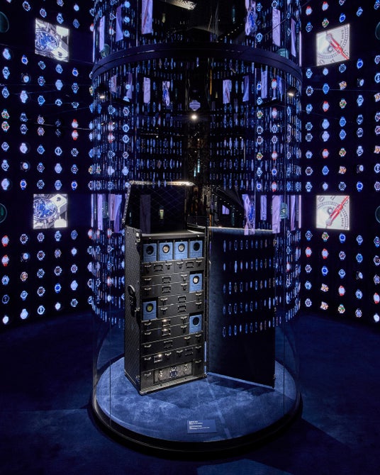 「Lifestyle (ライフスタイル)」では、パノラマのように並んださまざまなオブジェが音、読書、そして日々の習慣を通じて創造性を表現し、単なる旅を超えてアール・ドゥ・ヴィーヴル(豊かなライフスタイル)へと広がるルイ・ヴィトンの世界観を讃えます。「Watches(ウォッチ)」では、時間の精度とフォルムが語る詩情を紹介。「Picnic(ピクニック)」では、携帯用トランクや実用性と楽しみを兼ね備えたテーブルウェアを通して、優雅な屋外でのレジャーの世界を再発見します。「Personalisation(パーソナライゼーション)」は、創業当初からのルイ・ヴィトンを定義付ける展示室。手描きのイニシャルや特徴的なモチーフ、特注のディテールによって、それぞれのトランクが持ち主のアイデンティティを反映するように製作されてきたこの伝統は、当初からあらゆるクリエーションを、持ち主の個性と「旅の真髄(こころ)」を象徴する唯一無二の存在へと変容させてきました。アニエールの邸宅のダイニングルームを彷彿させるこの空間は、パーソナライズされたトランクの表面を組み合わせることで、没入感のあるモザイクが形成されています。