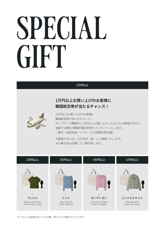 さらに1万円(税込)以上ご購入の方には、韓国旅行の航空券が当たる抽選にご参加いただけます。(成田空港-仁川国際空港区間)