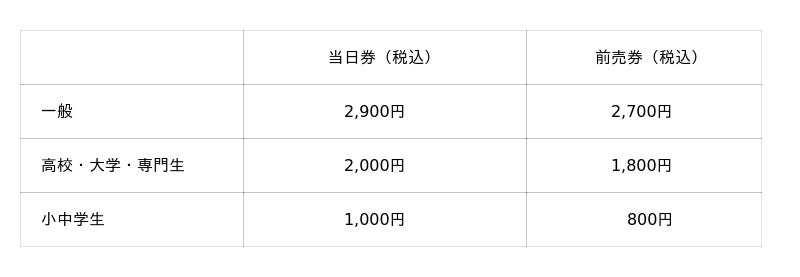 当日券 8,100円/前売券 7,500円(一般のみ)