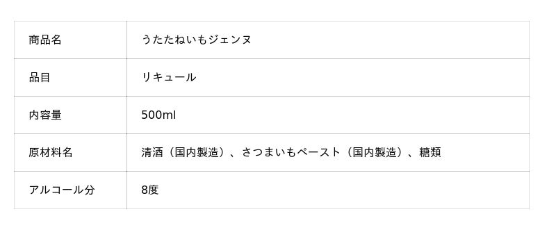 さつまいも×日本酒リキュール「うたたねいもジェンヌ」